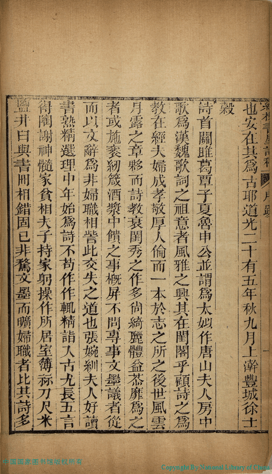 | (PRINT FRIENDLY VERSION) 陽湖張氏四女集(清張曜孫輯) : 綠槐書屋詩初稿:二卷 (清張綸英撰)。清道光間(1821-1850)陽湖張氏宛鄰書屋刻本 ![]() 頁碼 : 序跋1.1b | 点 击 放 大 | 陽湖張氏四女集(清張曜孫輯) : 綠槐書屋詩初稿:二卷 (清張綸英撰)。清道光間(1821-1850)陽湖張氏宛鄰書屋刻本![]() 頁碼 : 序跋1.1a | 点 击 放 大 | 返回 |