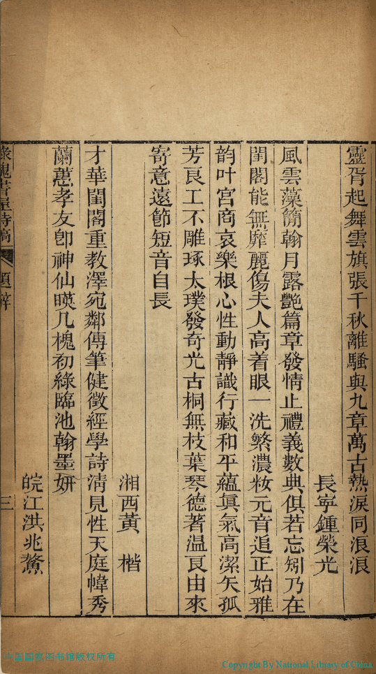 | (PRINT FRIENDLY VERSION) 陽湖張氏四女集(清張曜孫輯) : 綠槐書屋詩初稿:二卷 (清張綸英撰)。清道光間(1821-1850)陽湖張氏宛鄰書屋刻本 ![]() 頁碼 : 題辭1.3a | 点 击 放 大 | 陽湖張氏四女集(清張曜孫輯) : 綠槐書屋詩初稿:二卷 (清張綸英撰)。清道光間(1821-1850)陽湖張氏宛鄰書屋刻本![]() 頁碼 : 題辭1.2b | 点 击 放 大 | 陽湖張氏四女集(清張曜孫輯) : 綠槐書屋詩初稿:二卷 (清張綸英撰)。清道光間(1821-1850)陽湖張氏宛鄰書屋刻本![]() 頁碼 : 題辭1.2a | 点 击 放 大 | 返回 |