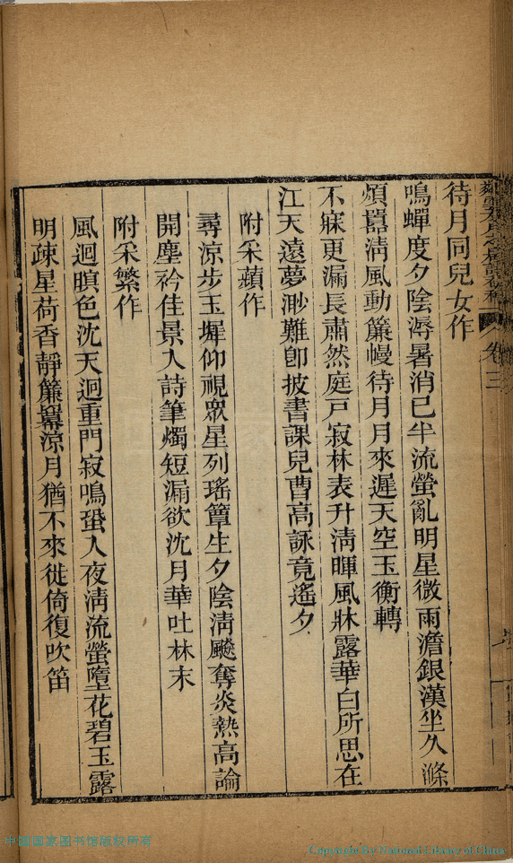 | (PRINT FRIENDLY VERSION) 陽湖張氏四女集(清張曜孫輯) : 鄰雲友月之居詩初稿:四卷 (清張紈英撰)。清道光間(1821-1850)陽湖張氏宛鄰書屋刻本 ![]() 頁碼 : 3.7b | 点 击 放 大 | 返回 |