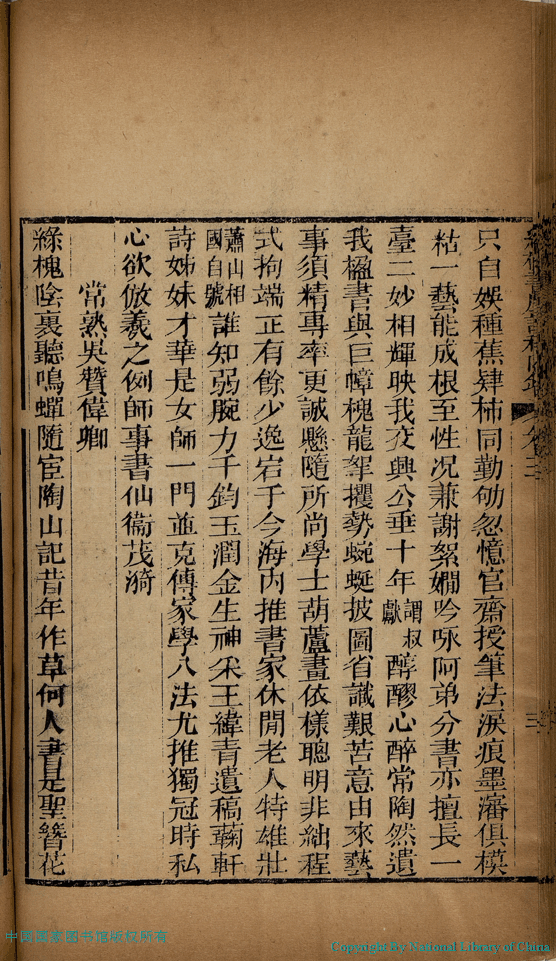 | (PRINT FRIENDLY VERSION) 陽湖張氏四女集(清張曜孫輯) : 綠槐書屋詩附錄:五卷 (清張曜孫輯)。清道光間(1821-1850)陽湖張氏宛鄰書屋刻本 ![]() 頁碼 : 附錄-3.3b | 点 击 放 大 | 陽湖張氏四女集(清張曜孫輯) : 綠槐書屋詩附錄:五卷 (清張曜孫輯)。清道光間(1821-1850)陽湖張氏宛鄰書屋刻本![]() 頁碼 : 附錄-3.3a | 点 击 放 大 | 返回 |