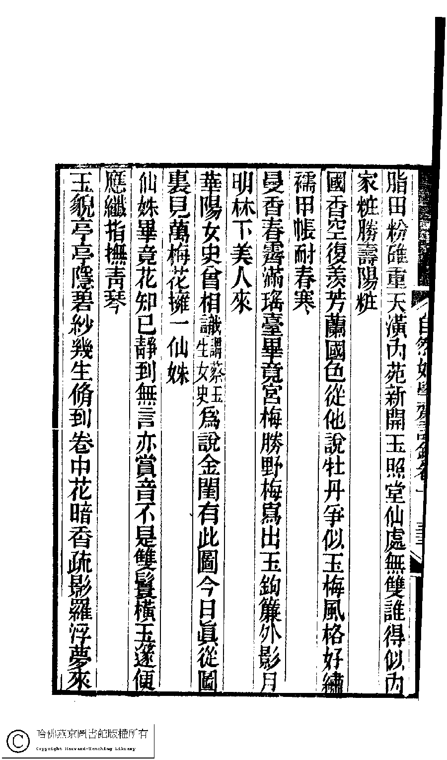 Poem [Biao mei Xu Yunlin zi jing shi yi Taiqing fu jin Ting xue tu suo ti wei xiao Huarui fu ren Gong ci ti shu ba jue ju ying zhi]