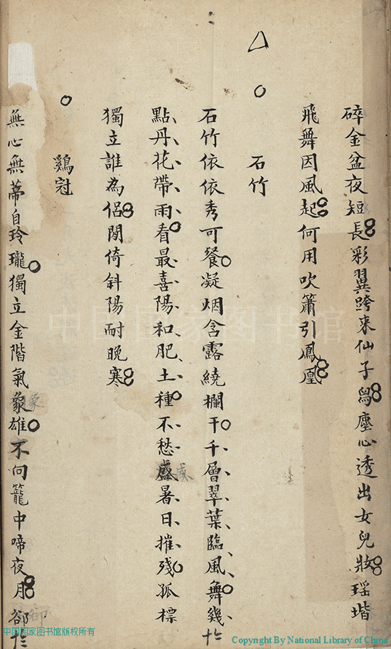 | (PRINT FRIENDLY VERSION) 清芬閣小草:一卷,詩餘:一卷(清鮑蘋香撰)。清光緒間稿本 ![]() Page : 詩.4b | click for larger image | Back |