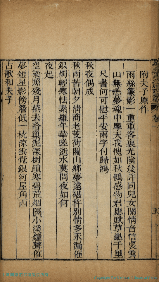 | (PRINT FRIENDLY VERSION) 陽湖張氏四女集(清張曜孫輯) : 鄰雲友月之居詩初稿:四卷 (清張紈英撰)。清道光間(1821-1850)陽湖張氏宛鄰書屋刻本 ![]() Page : 1.5b | click for larger image | Back |