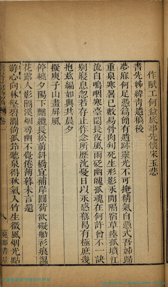| Appears in: Yanghu Zhang shi si nü ji (edited by Zhang Yuesun, Qing dynasty): Lin yun you yue zhi ju shi chu gao: 4 juan (by Zhang Wanying, Qing dynasty) |