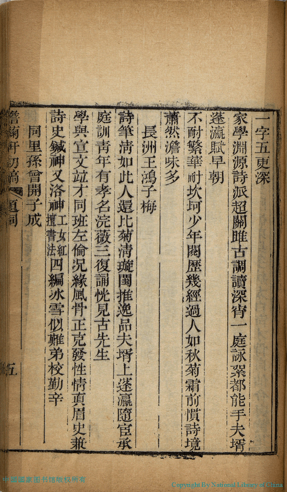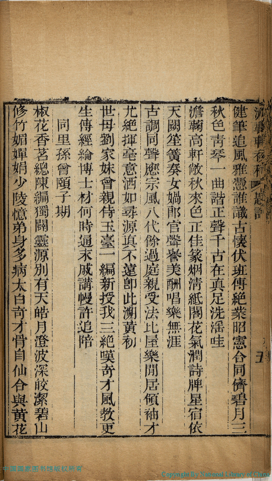 | Appears in: Yanghu Zhang shi si nü ji (edited by Zhang Yuesun, Qing dynasty): Dan ju xuan shi chu gao: 4 juan, ci: 1 juan (by Zhang Xiying, Qing dynasty) |