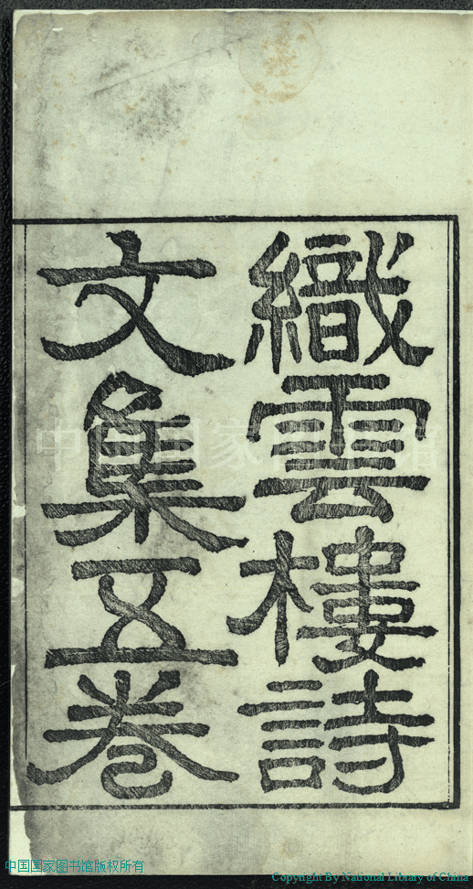 織雲樓集:五卷(清陳貞撰)。光緒六年(1880)