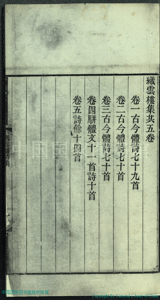 織雲樓集:五卷(清陳貞撰)。光緒六年(1880)