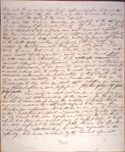 Cochran, Andrew William. Eight letters to Roderick Mackenzie, 1823-1837. An electronic transcription. MFTP #0004 there will be an early subject of difference, for I do not suppose the Govr can give them any other answer this year than he did, the last, to the same request[.] In your letter to me in November, you alluded to the progress of our Literary & Historical Society. If I can get a frank for it tomorrow, I will send you our last annual report[.] We have heard, perhaps not on sufficient grounds of fact, that you have a large collection, made by yourself while in the North West country, of original Indian tales; as related by the Indians over their fires at night[.] I can easily conceive that such a collection, made by one with your habits of observation, would contain much that is both new and interesting[.] And we cannot hope for your personal assistance or countenance to our endeavours, I am convinced your good will towards us would induce you to allow us to make use of any such valuable materials for publication, if they should be of a nature suitable to our transactions[.] Will you be kind enough to say, when you next write, whether you have any such papers in your possession. [.] I am sorry we shall not see you in your place this session, — and still more sorry for the cause[.] The Chief Justice has had a severe illness since the middle of Decr; — though long since convalesent; — still confined to his room[.] His disorder was influenza[.] Mr Smith too has been very ill for several weeks, — first form an upset in cariole which greatly injured his leg & back, & then from erysipelas following the accident, which has given him a sad pair of swelled legs, & keeps him still confined to his couch[.] Judge Bowen sits Speaker (very properly) notwithstanding the out cry long made in the Assembly, and since re-echoed by the Council against [4] L E G E N D : |