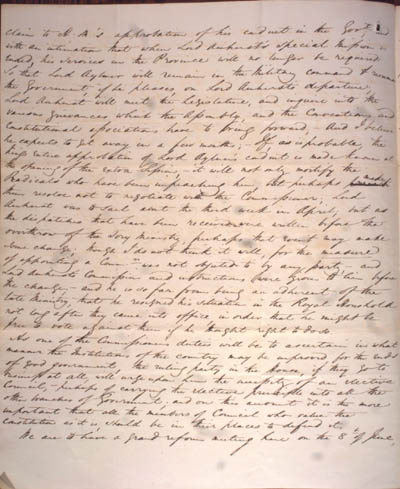 Cochran, Andrew William. Eight letters to Roderick Mackenzie, 1823-1837. An electronic transcription. MFTP #0004 claim to H. M.'s approbation of his conduct in the Govt; and with an intimation that when Lord Amherst's special Mission is ended, his services in the Province will no longer be required[.] So that Lord Aylmer will remain in the Military command & resume the Government, if he pleases, on Lord Amherst's departure[.] Lord Amherst will meet the Legislature, and inquire into the various grievances which the Assembly, and the Conventions and Constitutional associations have to bring forward; — And I believe he expects to get away in a few months[.] If, as is probable, the Kings entire approbation of Lord Aylmer's conduct is made known at the opening of the extra Session, — it will not only mortify the Radicals who have been impeaching him, but perhaps make them resolve not to negotiate with the Commissioner[.] Lord Amherst was to sail about the third week in April; but as the dispatches that have been received were written before the overthrow of the Tory Ministry, perhaps that event may make some change; though I do not think it will, for the measure of appointing a Comm.r was not objected to by any party, — and Lord Amherst's Commission and instructions were given to him before the change; — and he is so far from being an adherent of the late Ministry, that he resigned his situation in the Royal Houshold not long after they came into office, in order that he might be free to vote against them if he thought right to do so. As one of the Commissioners duties will be to ascertain in what manner the Institutions of the country may be improved, for the ends of good government, the ruling party in the House, if they go to business at all, will urge upon him the necessity of an elective Council, — perhaps of carrying the elective principle into all the other branches of Government; and on this account it is the more important that all the members of Council who value the constitution as it is, should be in their places to defend it. We are to have a grand reform meeting here on the 8h of June, [2] L E G E N D : |