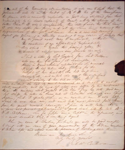 Cochran, Andrew William. Eight letters to Roderick Mackenzie, 1823-1837. An electronic transcription. MFTP #0004 every act of the Executive administration, it will come to pass that the Government will be in the hands of A & B two of the Commissioners, the former who is nominally responsible as Govr being sheltered from that responsibility by his double capacity of Commr, and by the opinion of his brother Commr B. who is irresponsible, thus setting aside the third Commr C. who may differ from them, and at the same time ensuring the acquiescence of the Govt at home[.] This is a new and cunning project for governing a country according to any course of policy that may be found most easy & convenient, without the existence of an effectual responsibility any where[.] Excuse this prosing essay, & receive it as for your own private ear only. I had a letter, by Lord Gosford, from Lord Dalhousie who was then (15h June) at Leamington, a place in Warwickshire celebrated for its mineral springs[.] He had taken Lady D. there for the benefit of her health[.] She had long been seriously ill, — and until she went their confined almost wholly to her bed or sofa[.] But he writes me that she had so much recovered as to be able to walk about, unassisted; and he himself also was better by his residence there. He mentions Lord Gosford & Sir Chas Grey as both good men — but Whigs[.] The latter he knew well at Calcutta where he was Chief Justice; Lord D. speaks of him as an excellent man & able Judge. I wish he were here now, and would take more forward part, than, from his quiet reserved character, I fear he will take. He is in face and general appearance a good deal like the late Mr W.B. Coltman[.] Sir Geo. Gipps was a Captn in the Engineers, and is a most decided Whig, & something beyond. When you come to Quebec, perhaps you will be good enough to bring with you some of your memoranda of the Indian countries & Indian life, and allow me the pleasure of looking over them. Believe me My Dear Sir Very truly your's AW Cochran [3] L E G E N D : |