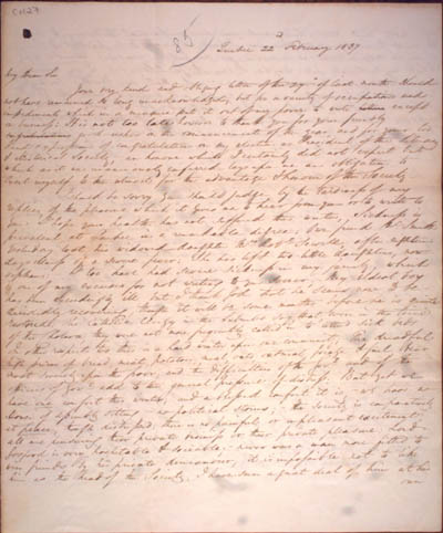 Cochran, Andrew William. Eight letters to Roderick Mackenzie, 1823-1837. An electronic transcription. MFTP #0004 Quebec 22nd February 1837 My Dear Sir Your very kind and obliging letter of the 27h of last month should not have remained so long unacknowledge, but for a variety of occupations and impediments which in a measure put it out of my power to write except on business[.] It is not too late however to thank you for your friendly good wishes on the commencement of the year, and for your too kind expressions of congratulation on my election as President of the Literary & Historical Society, an honour which I certainly did not expect but which as it was unanimously conferred, lays upon me an obligation to exert myself to the utmost for the advantage & honour of the Society. I should be sorry you should judge by the tardiness of my replies, of the pleasure which it gives me to hear from you or to write to you[.] I hope your health has not suffered this winter, Sickness is prevalent at Quebec in a remarkable degree[.] Our friend Mr Smith yesterday lost his widowed daughter Mrs Robt Sewell, after eighteen days illness of a severe fever[.] She has left two little daughters, now orphans[.] I too have had severe sickness in my family, which is one of my excuses for not writing to you sooner[.] My eldest boy has been exceedingly ill, but I thank God that he seams now to be decidedly recovering, though it will be some months before he is quite restored[.] The Catholic Clergy in the Suburbs say, that, even in the time of the Cholera, they were not more frequently called in to attend sick beds. In other respects too this is a hard winter upon our community; the dreadful high prices of bread, meat, potatoes, meal, oats, oatmeal, forage & fuel, bear most severely upon the poor; and the difficulties of the Govt and of the officers of Govt add to the general pressure of distress[.] But yet we have one comfort this winter; and a blessed comfort it is, – we have no House of Assembly sitting, — no political storms; — the Society is comparatively at peace, though distressed: there is no painful or unpleasant excitement; all we pursuing their private business or their private pleasure[.] Lord Gosford is very hospitable & sociable; — never was a man more fitted to win friends by his private demeanour; it is impossible not to like him as the head of the Society[.] I have seen a great deal of him at his own [1] L E G E N D : |
