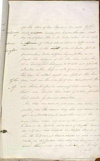 MacDonell, John. Description of Lake Athabasca and the Chipweans, ca. 1805 and Journal of a Voyage from Lachine to Fort River Qu'Appelle, 1793. An electronic transcription. MFTP #0005 for the space of ten leagues[.] We made by the mens comput twenty four leagues this day[.] [N]ext day we passed Tête a la loutre where it is said a collumn of Rock stands upon a lofty round mountain to the heiht of ten to Twelve feet perpendicular[.] Twelve to fifteen leagues further on we found the entrance of the Pic River where there is a Trading Post belonging to Mr Coté and associates situated within half a mile of our encampment[.] This was the coldest night ever I felt at this time year, and in the vicinity of our encampment there are eleven Crosses in memory of that number men that are buried here most of whom perished last winter by various casualties. We keep our arms in good order ever since we parted from the canoes being told the Indians are apt to attack single canoe. The crews of the canoes have seldom any arms of their own[.] At l'Anse a la Bouteille met a canoe of Forsyth Richardson & Cos, that had wintered in Nipigon alongside of the H. B. Company's Traders, who did not make a single pack, for Mr Hudson their cheif, had been frozen to death winter seeking subsistance for himself and [75] L E G E N D : |