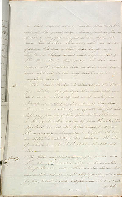 MacDonell, John. Description of Lake Athabasca and the Chipweans, ca. 1805 and Journal of a Voyage from Lachine to Fort River Qu'Appelle, 1793. An electronic transcription. MFTP #0005 we shall sleep out, wind and weather permitting; this side of the grand portage[.] Leaving pointe au père we paddled two pipes and put to shore to give the men time to clean themselves, while we breakfasted[.] [T]his done a short pipe brought us to Pointe au Chapeaux round which we got a sight of the long wished for Grand Portage. The beach was covered with spectators to see us arrive, our canoe went well and the crew sung paddling songs in a vociferous manner. The Grand Portage is situated in the bottom of a shallow Bay perhaps three miles deep and about one league and a half wide at its mouth from Pointe aux Chapeaux to pointe a la Framboise having a small Island just opposite the fort about half way from one of these points to the other: on a low spot which rises gently from the Lake. The pickets are not above fifteen to twenty paces from the waters edge[.] Immediately back of the Fort is a lofty round Sugar loaf mountain the base of which comes close to the Picket on the North West Side[.] The Gates are shut alyways after sunset and the Bourgeoin and clerks Lodge in houses within the pallisades, where there are two Sentries keeping a look out all night cheifly for fear of accident by fire. A clerk[,] a guide and four men are considered watch [77] L E G E N D : |