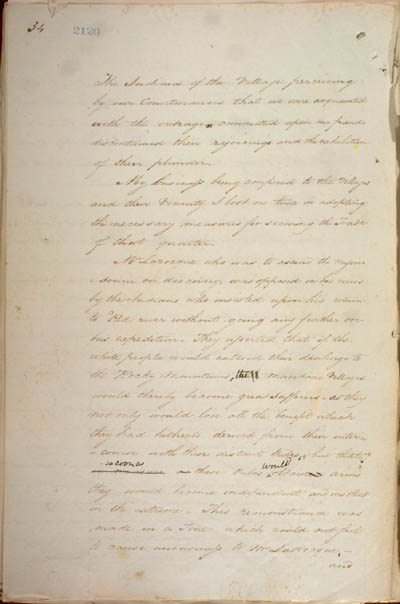 McKenzie, Charles. The Mississouri Indians, 1809. An electronic transcription. MFTP #0009 The Indians of the Village perceiving by our Countenances that we were acquainted with the outrages committed upon our friends discontinued their rejoicing and the exhibition of their plunder[.] My business being confined to the Villages and their Vicinity I lost no time in adopting the necessary measures for securing the Trade of that quarter[.] Mr Larocque who was to ascend the mississourie on discovery, was opposed in his views by the Indians who insisted upon his return to Red river without going any further on his expedition[.] They asserted that if the white people would extend their dealings to the Rocky Mountains, The Mandane Villages would thereby become great sufferers – as they not only would lose all the benefit which they had hitherto derived from their intercourse with these distant tribes – but that in measure as these tribes obtained arms they would become independent and insolent in the extreme[.] This remonstrance was made in a Tone which could not fail to cause uneasiness to Mr LaRocque – and [34] L E G E N D : |