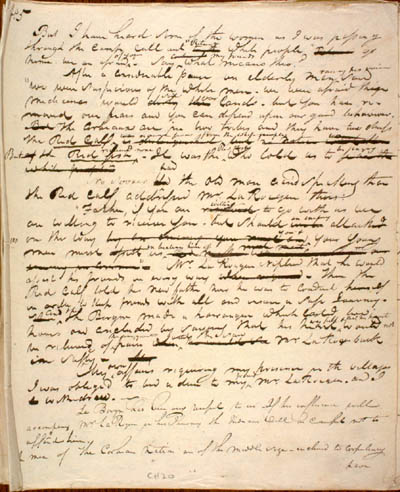 McKenzie, Charles. Journal of the Second, Third and Fourth Expeditions to the Missouri, 1805, 1806 with the Supplement to the Second Expedition. An electronic transcription. MFTP #0010 No 5 But I have heard some of the women as I was passing through the camp call out White people go home. We are afraid []" Say what means this? After a considerable pause an elderly man said "we were suspicious of the White men[.] We were afraid the medicines would lands – but You have removed our fears and you can depend upon our good behaviour. The Corbeauxs are in two tribes and they have two chiefs the Red Calf the Red fish [.] It was the who told us to [.] No sooner the Old man ceased speaking than the Red Calf addressed Mr La Rocque thus: "Father, if you are to go with us we are willing to receive You – but should attack on the way Your Young men must us " Mr La Rocque replied that he would assist his friends in every way [.] Then the Red Calf told his new father how he was to conduct himself in order to Keep friends with all and insure a safe Journey. the Borgne made a harangue which lasted two hours and concluded by saying that his heart would be relieved of consequent pain Mr La Rocque back in safly[.] My affairs requiring my presence in the villages I was obliged to bid a dieu to my Mr La Rocque. and I withdrew. Le Borgne has been very useful to us[.] If his influence will accompany Mr La Rocque in his Journey the Indians will be careful not to offend him. The Corbeau Nation are of the middle size – inclined to corpulency have [9] L E G E N D : |