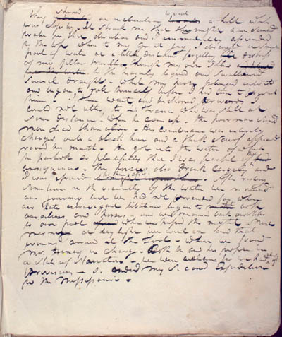 McKenzie, Charles. Journal of the Second, Third and Fourth Expeditions to the Missouri, 1805, 1806 with the Supplement to the Second Expedition. An electronic transcription. MFTP #0010 they an inclination a hill which was close by[.] It struck me that they might have scented water in that direction and I immediately asscended to the top where to my great joy I discovered a small pool of water at a little distance forgetting distress of my fellow traveller through my own I flew to the heavenly liquid and swallowed several draughts – while my horse plunged into it and began to roll himself before I had time to prevent him[.] I then went and beckoned, for words I could not utter, to La France who was still at some distance[.] When he came up – the poor man seemed more dead than alive[.] His countenance was entirely changed into a black hue and a thick scurf appeared round his mouth[.] He got into the water of which he partook so plentifully that I was fearful of consequences[.] The horses also drank largely and I was afraid [.] After resting some time in the vicinity of the water we resumed our journey but we had not proceeded far when our late extravagant libations began to both ourselves and horses – and we meandered back ourselves to our pool where we passed the night[.] Next morning at day light we went on and that evening arrived at the Fort – where we found Mr Henry in charge[.] Both he and his people in a state of starvation – we were welcome for we had provisions[.] So ended my second Expedition to the Mississouri[.] [14] L E G E N D : |