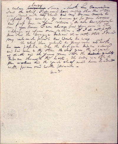 McKenzie, Charles. Journal of the Second, Third and Fourth Expeditions to the Missouri, 1805, 1806 with the Supplement to the Second Expedition. An electronic transcription. MFTP #0010 a certain stone[.] Look here Comrades said the chief – I dreamed last night that this stone was stained with blood and my dream must be fulfilled this evening – go however go for your horses and pass here on your return – do not disappoint me – you Know I can always find you even in the village of your own nation[.] "If I do not pass here 'said the Arriqira Indian' it is not that I dread my intimate friend" – and went his way[.] The chief then instructed his Young men and took his possition. When the Arriqira Indian returned and had come to the stone the chief gave the signal of death and the Young men shot the guilty Indian through the heart[.] The body was left to the wolves and the Great chief went home loaded with praise and with presents[.] End [24] L E G E N D : |