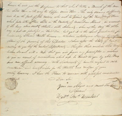 Wentzel, Willard Ferdinand. Fifteen letters from Wentzel at Mackenzie River to Roderick Mackenzie, 1807-1824. An electronic transcription. MFTP #0012 however he will give the preference to that which takes a Branch of the Martin Lake River in its way to Copper Mine River[.] The only seeming difficulty will be on the part of the natives, who wish to proceed by the Red Knife River which falls into Slave Lake in the Vicinity of Mountain Island, on account of its being abundantly Stocked with Animals – whereas they say the other way is not so plentiful in Rein Deer – but yet it is the most practicable for moderately Loaded North Canoes[.] Whatever intelligence I may hereafter obtain of the progress of this Expedition – I shall take the liberty of transmitting to you by the earliest opportunity[.] Therefore Shall conclude this long tedious Scrawl with a hope that you will forgive my presumption in wishing to give an account of circumstances which will be handed to you by abler Pens and more official accuracy[.] With Sentiments of humble respect to Mrs Mackenzie, and hearty wishes to the Health and welfare of your worthy Concerns – I have the Honor to remain with grateful consideration Dear Sir Your ever obliged and most tha[nkful] Servant Willd Ferd Wentzel To The Honble Coll Roderick McKenzie Seigneur of Terrbonne Lower Canada [75] L E G E N D : |