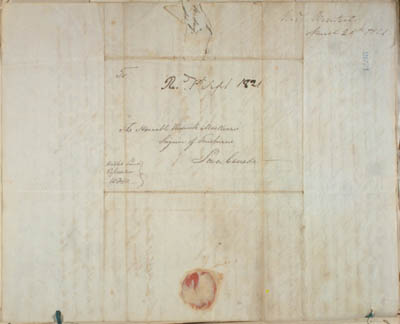 Wentzel, Willard Ferdinand. Fifteen letters from Wentzel at Mackenzie River to Roderick Mackenzie, 1807-1824. An electronic transcription. MFTP #0012 Recd 1st Sept 1821 [address] To The Honorable Roderick MacKenzie Seigneur of Terrebonne Lower Canada Arctic Land Expedition WF.W. [docket] W.F.Wentzel March 26th 1821 [80] L E G E N D : |
