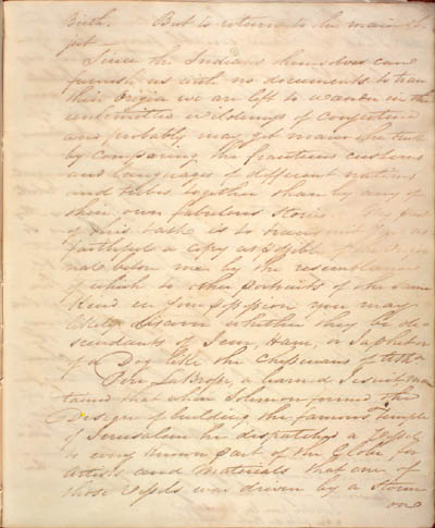 McKenzie, James. Some Account of the King's Posts, the Labrador Coast, and the Island of Anticosti by an Indian Trader Residing there Several Years with a Description of the Natives and the Journal of a trip through those Countries in 1808 by the Same Person. An electronic transcription. MFTP #0017 Birth. But to return to the main object[.] Since the Indians themselves can furnish us with no documents to trace their Origin we are left to wander in the unlimitted wilderness of conjecture and probably may get nearer the truth by comparing the feautures customs and languages of different nations and tribes together than by any of their own fabulous stories. My part of this task is to transmit you as faithful a copy as possible of the original before me by the resemblance of which to other portraits of the same kind in your possession you may likely discover whether they be descendants of Jem, Ham, or Japhet or of a Dog like the Chepewans of Atha[.] Pere LaBrosse, a learned Jesuit, maintained that when Solomon formed the Design of building the famous Temple of Jerusalem he dispatched a Vessel to every known part of the Globe for Artists and Materials that one of those Vessels was driven by a storm on [15] L E G E N D : |