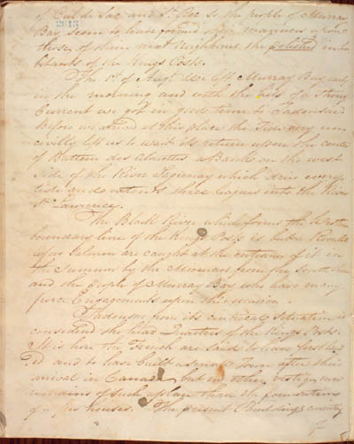 McKenzie, James. Some Account of the King's Posts, the Labrador Coast, and the Island of Anticosti by an Indian Trader Residing there Several Years with a Description of the Natives and the Journal of a trip through those Countries in 1808 by the Same Person. An electronic transcription. MFTP #0017 of Cul de Sac and St Roc so the people of Murray Bay seem to have formed their manners upon those of their next neighbours the polished inhabitants of the Kings Posts. The 1st of Augt we left Murray Bay early in the morning and with the help of a strong Current we got in good time to Tadousac. Before we arrived at this place the Tide very uncivilly left us to wait its return upon the center of Batteur des Alouettes a Bank on the west side of the River Sagunay which dries every tide and extends three leagues into the River St Lawrence. The Black River which forms the Western boundary line of the Kings Posts is but a Rivulet[.] A few salmon are caught at the entrance of it in the Summer by the Micmacs from the south shore and the people of Murray Bay who have many fierce Engagements upon this occasion. Tadousac from its centrical situation is considered the head Quarters of the Kings Posts. It is here the French are said to have first landed and to have built a small Town after their arrival in Canada but no other vestige now remains of such a place than the foundation of a few houses. The present Buildings consisting of [60] L E G E N D : |