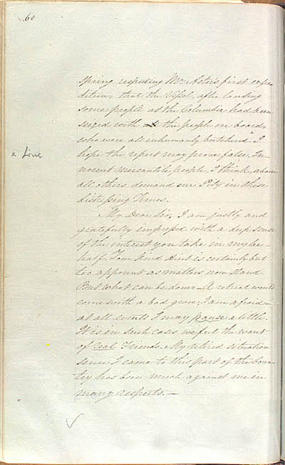 Keith, George. An Account of Mackenzie River (Letters to Roderick Mackenzie), 1807-1817. An electronic transcription. MFTP #0033 60 spring respecting Mr Astor's first expeditions; that the Vessel, after landing some people at the Columbia had been seized with all the people on board, who were all inhumanly butchered. I hope the report may prove false. Innocent mercantile people, I think, above all others demand our Pity in these distressing Times. My Dear Sir, I am justly and gratefully impressed with a deep sense of the interest you take in my behalf. Your kind Hint is certainly but too apparent as matters now stand. But what can be done: A retreat would come with a bad grace, I am afraid – at all events I may pause a little. It is in such cases we feel the want of Real Friends. My retired situation since I came to this part of the Country has been much against me in many respects. [60] L E G E N D : |