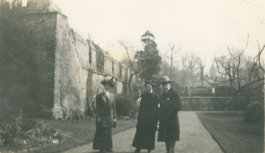 Description: Elsie Bethume, Mary Gibbons, and Sir William Osler at the Old City Wall at New College, Oxford. Mary Gibbons, nee Osler, was the daughter of Sir William's brother Edmund Boyd Osler.