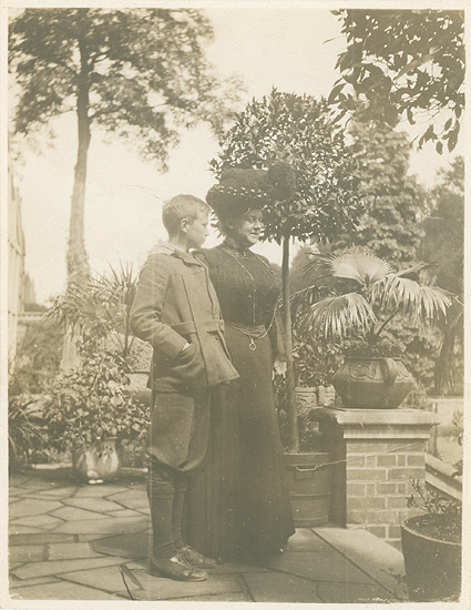 Description: Grace Revere Osler and her son, Revere, on the terrace of 13 Norham Gardens, their Oxford home. This picture was taken circa 1910, when the family had been living in Oxford for five years and at 13 Norham Gardens for three years. Revere is about 14 years old in this photo.