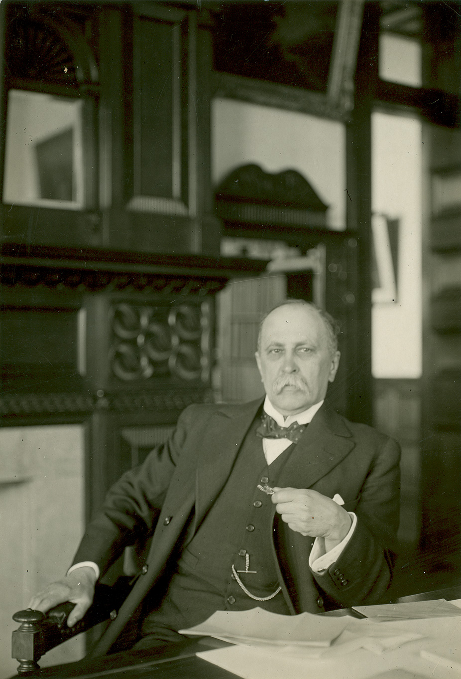 Description: William Osler at his desk at home, 13 Norham Gardens, Oxford. Osler was Regius Professor of Medicine at Oxford University from 1905 to his death in 1919.