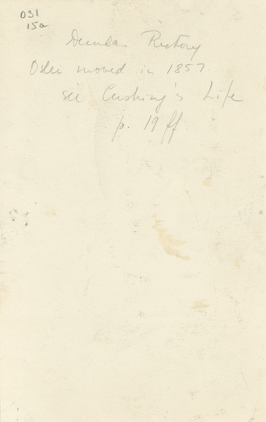 Title: Back of Photograph of the Rectory at Dundas, Ontario