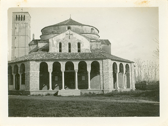 Description: An unidentified church in northern Italy, photographed by Revere Osler. Revere began to develop interests in photography and architecture in his adolescence. This photo is part of a series of twenty-two photos taken by Revere in northern Italy while the Oslers were vacationing there in 1912.