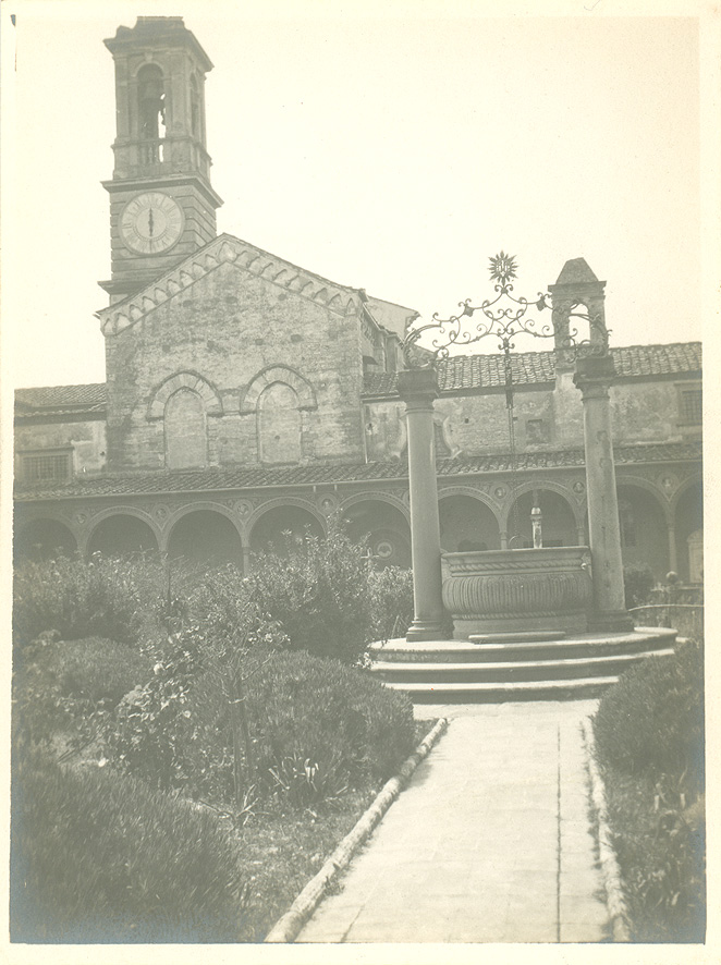 Description: A church and churchyard, with what appears to be a well in front, somewhere in northern Italy, where the Oslers were vacationing in the spring of 1912. The photograph was taken by Revere Osler, who began to develop interests in architecture and photography during his adolescence.