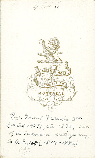 Notes: Geo. Grant Francis 2nd (died 1907), ca 1875; son of the Swansea antiquary, G.G.F., 1st (1814-1882). (transcribed from back of photo)