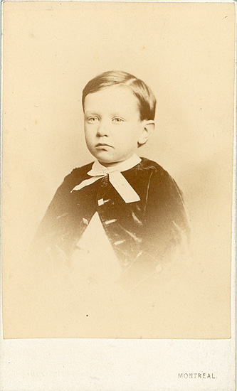 Description: George Grant Francis, III, eldest son of Marian Francis, William Osler's first cousin. George is about five years old in this picture; he did not live past the age of eighteen, succumbing to typhoid with secondary meningitis after a long illness. The Francis family, and Marian's sister Jennette Osler, lived on McGill College Avenue in Montreal while William Osler was a medical student and, later, a professor of medicine at McGill Medical School. He was a frequent visitor to the Francis home, and was especially fond of Marian's children.