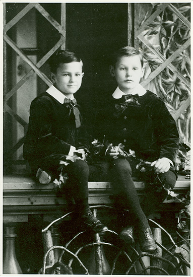 Description: William Willoughby Francis, about seven years old, and Britton Bath Osler Francis, about nine; both were sons of Marian Francis, William Osler's first cousin. Osler was close to Marian and her sister Jennette Osler, and was especially fond of Marian's children. He took an active interest in them throughout their lives. W. W. Francis, Osler's godson, eventually became a doctor like his famous cousin; after Osler's death he compiled a catalogue of Osler's books, and became the first Osler librarian.