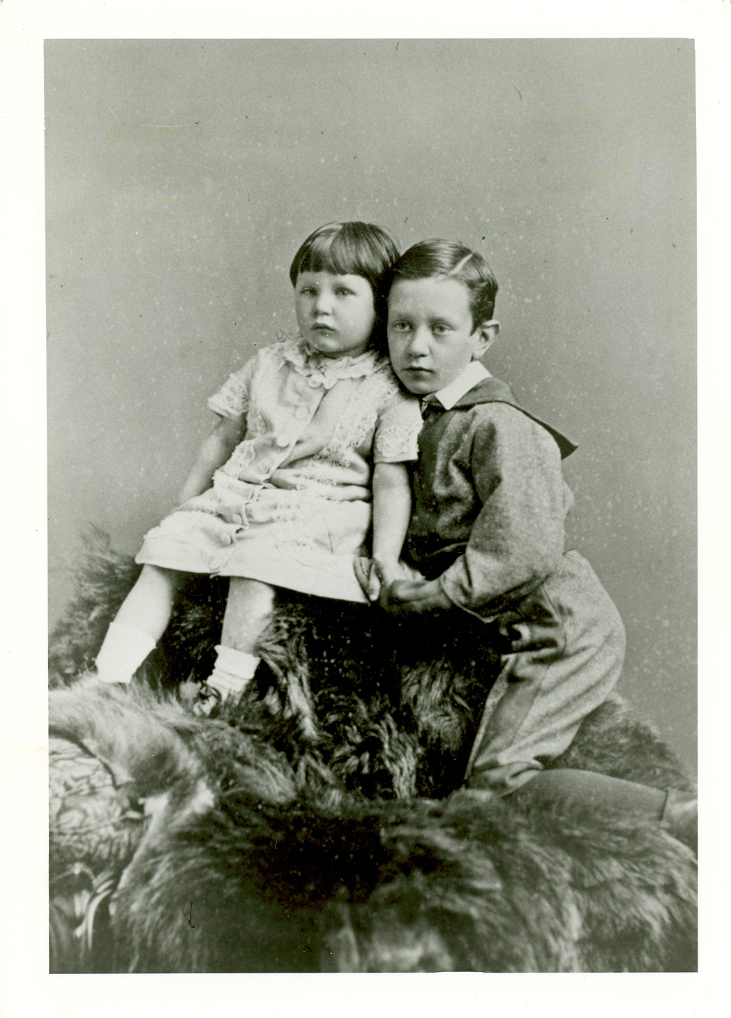 Description: Gwyn Francis, about eight years old, and his sister Gwendolyn Francis (?), about three. Gwyn and Gwen were children of Marian Francis, William Osler's first cousin. Osler had a close relationship with Marian and her sister Jennette, and was especially fond of Marian's children. The family lived in Montreal; during Osler's time there as a medical student and then a professor, he was a frequent visitor to their house.