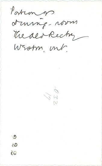 Title: Back of a Photograph of the Dining-Room in the Old Rectory, Trinity College Schoo, Weston, Ontario